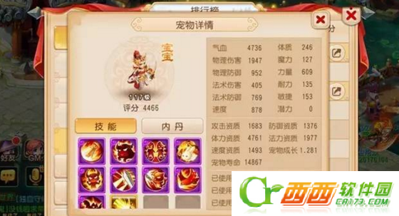 9技能+一个坐骑技能,各项资质和成长完全无可挑剔,技能全红,善恶还在!太羡慕她的主人啦~TUT~