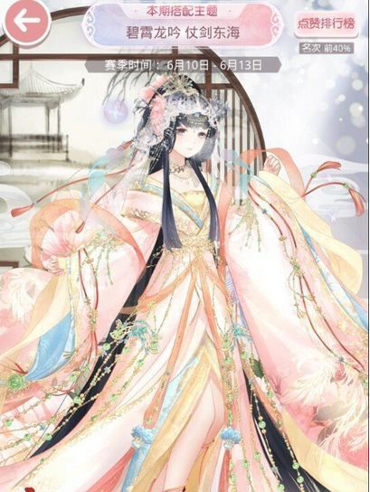 碧宵龙吟仗剑东海搭配赛中玩家可以按照主题来搭配,也可以选择近期的活动新套装来搭配。奇迹暖暖的搭配赛评委是玩家,玩家角色好看就会点赞否则就不会,点赞高的可以获得更好的奖励。