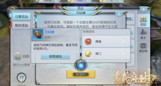 3、如果万妖牌的任务要求是在禁地里面的怪物,则玩家需要等到12点钟禁地开启之后再进行任务了。