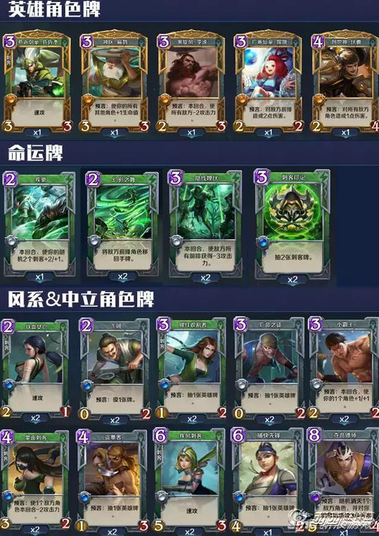 后期就是速攻派的天下了,像疾风刺客(5攻3血、速攻)上场就能吃掉大多数角色牌,甚至是英雄角色。需要提醒大家,刺客角色牌一定要放在后排,因为都是攻高血少。再敌方祭坛进入斩杀范围后,还能利用幻影之舞直接把前排软解掉(月之暗面遮蔽掉敌方前排,也可以越墙斩杀),此时要算准伤害,不要错过斩杀的机会哦~
