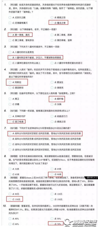 首页 → 安卓游戏资讯 → 安卓游戏攻略 → 崩坏3姬子考试答案是什么 姬子正式理论考答案汇总