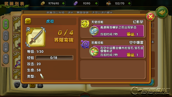 武器突破可以提升武器的成长等级上限,需要消耗大量的金币,特定或相同的武器。