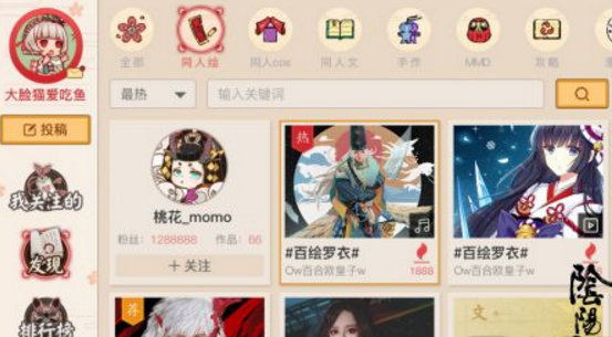 想要挖掘最热门的内容的话,可以点击作品排行榜看看最新的人气作品。此外,玩家还可以在搜索栏键入关键词,快速找到感兴趣的同人作者和作品。