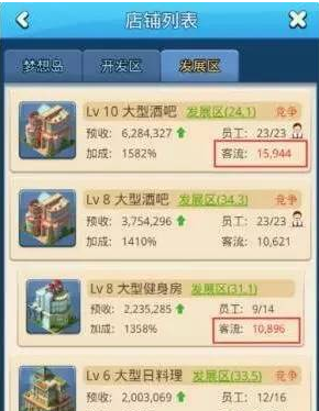 当您遇到升级或发展瓶颈时,可有针对性地升级对眼下发展有利的对应技能项,例如,遇到由于店铺客流上限过低而导致预收入无法拉高时,可以尽可能地让主角学习企业管理技能,提高了客流上限自然预收入也就上去了。