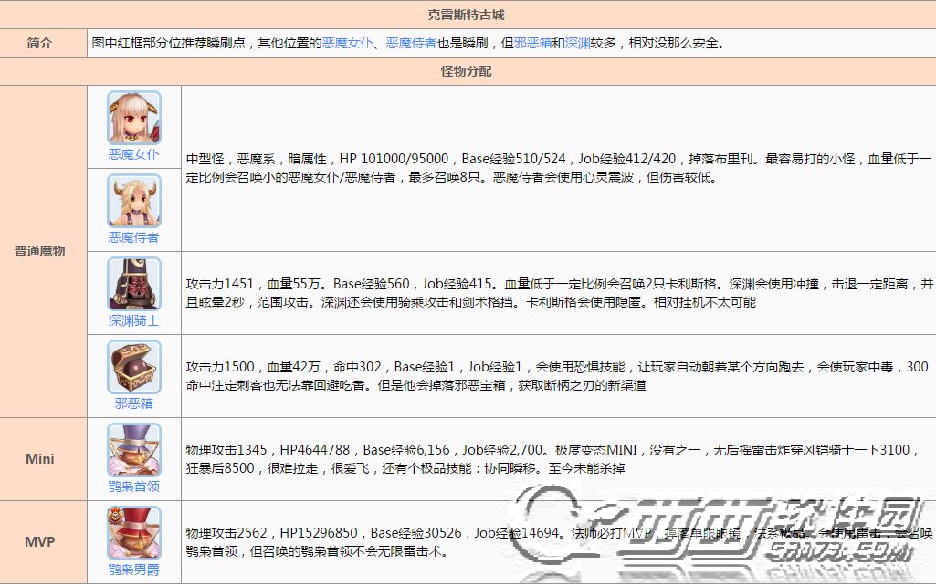 这就是西西给大家整理的魔物及刷怪点了,更多游戏资讯请继续关注西西软件园!