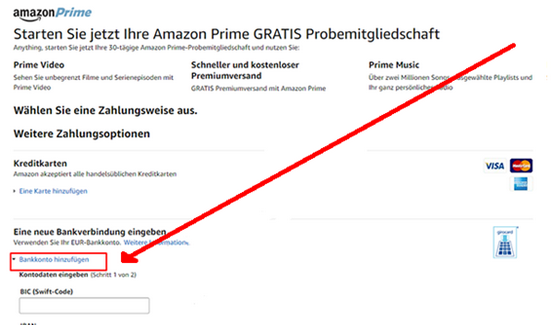 4- 你将重定向到这个网页,点击 Bankkontohinzufügen to expand another pay。