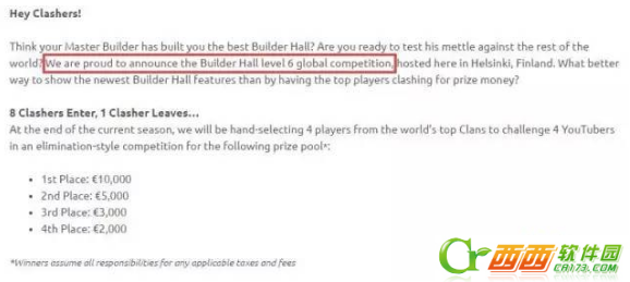 SUPERCELL官方宣布,将在7月1日举办一场“建筑大师基地邀请锦标赛”,八位来自世界各地的COC玩家,将会前往芬兰赫尔辛基SC总部,以参加这场比赛。