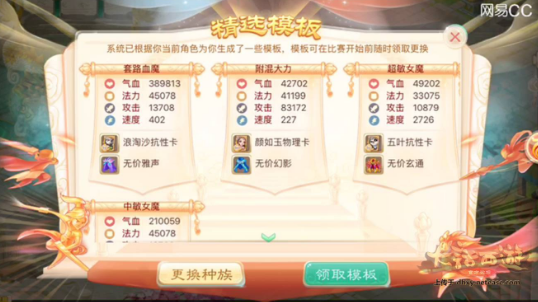 男魔:无脑全敏,必须最高!请对照模板,自己弄的低于模板就直接套吧,带乾坤!抗性选冰混睡忘三尸。反正超低血量,碰碰都死,抗其他没多大作用。修正三世男魔,属性卡五叶抗性卡,带个颜如玉给男鬼上隐身。(没截图男魔的,上个敏女魔的模板)