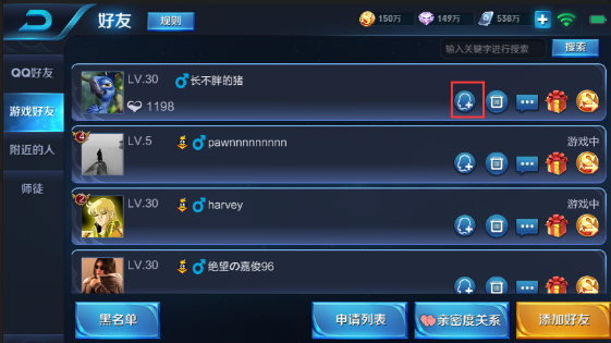 在游戏好友-点击好友QQ标志,就可以添加QQ好友啦。
