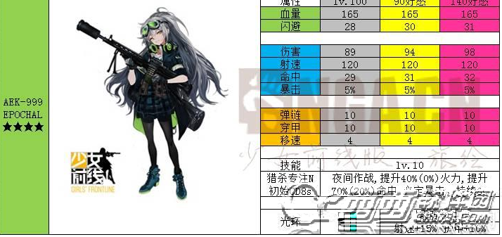 特别提一下命中,在90点好感的情况下在夜战有着4点命中,比其他的MG要多1点似乎挺厉害的