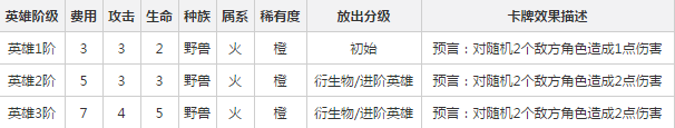 总之雷震子是一个非常强力的英雄卡,只要火系卡组就必组此卡。(现在貌似已经是3费3攻3血了?)