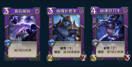 起手抓牌,可以先拿妲己、幽魂长枪手这类带汲取或者是可以过牌的卡牌,另外这套牌组中带有幽魂长枪手、幕后操纵等等,一共9张过牌,所以手牌会十分充足,无需担心。