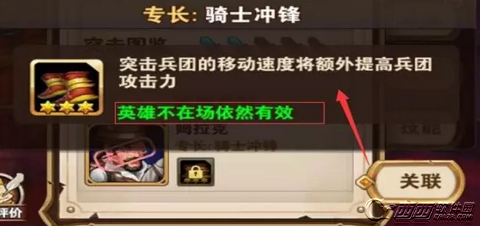 效果:突击兵团的移动速度将额外提高兵团的攻击力(英雄不在场依然有效)