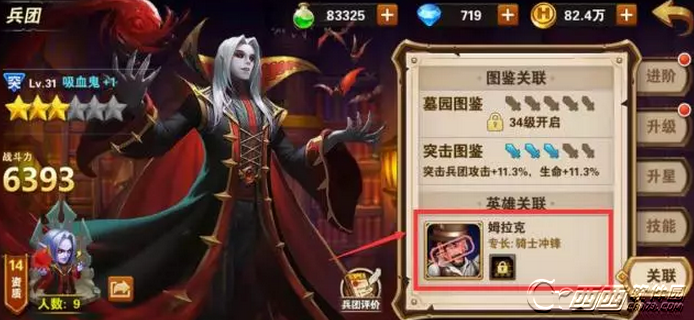 评价:突击兵团的速度都不错,吸血鬼兵团的速度也较高,姆拉克3星的『骑士冲锋』BUFF对所有突击兵团都有效率,可以提高兵团很多攻击力,更有利吸血鬼的伤害能力以及触发『鲜血猎杀』技能。