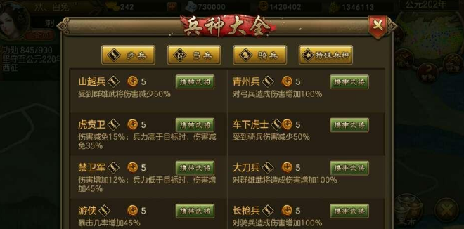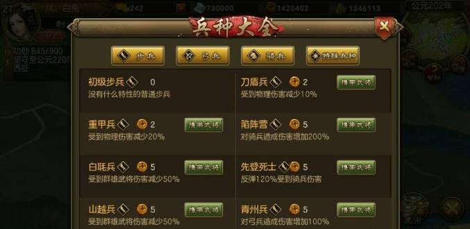 注意:兵种官职到达县令开启,兵种选择要在休息区挑选,进入战局就无法选择了。