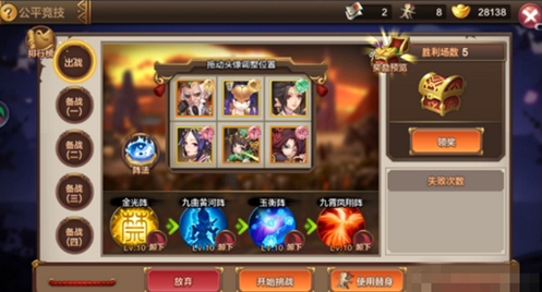 这两个阵法可以顺序互换,具体情况视自身阵容前排硬度和技能强度决定