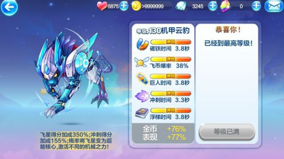 以上就是天天酷跑机甲云豹满级属性技能一览,机甲云豹值得培养吗,请大家继续关注。
