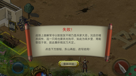 如果你没有及时杀掉这个士兵,农民伯伯会因为你杀了他的鸡,一根子把你打死。。。游戏从头再来。