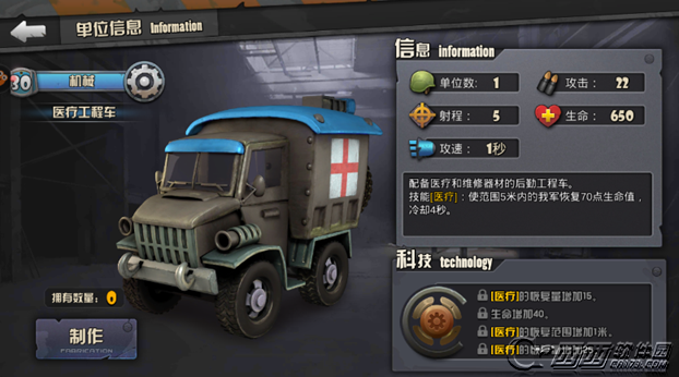 战地指挥官医疗工程车属性技能介绍