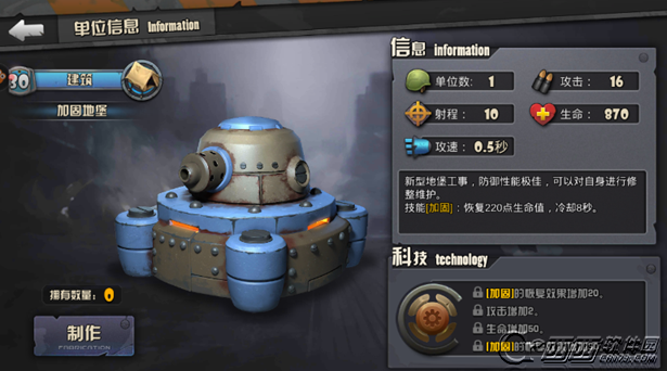 以上就是战地指挥官加固地堡属性图鉴,加固地堡技能科技介绍,请大家继续关注。