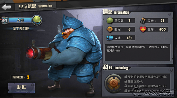 战地指挥官犀牛陆战队是蓝卡人类单位,犀牛陆战队攻击和射程都比较一般,不过技能可以减免伤害,犀牛陆战队科技可以提升技能,那么战地指挥官犀牛陆战队怎么样,科技怎么样,西西带来犀牛陆战队属性技能介绍,希望大家喜欢。