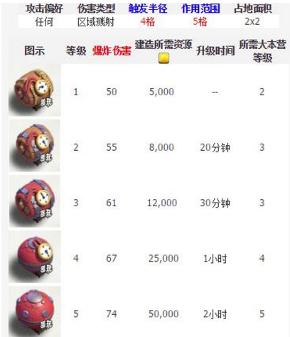 首页 → 安卓游戏资讯 → 安卓游戏攻略 → 部落冲突地雷升级所需资源时间数据详情汇总