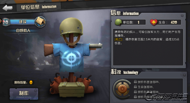战地指挥官自爆假人是一个可以吸引火力还可以对敌人造成伤害的建筑,自爆假人有什么效果,自爆假人怎么用,下面就是战地指挥官自爆假人属性效果图鉴,希望大家喜欢。