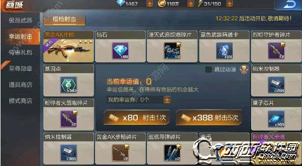 玩家每次射击1次,将可得到相应的幸运值,以提高你抽中稀有武器的概率。