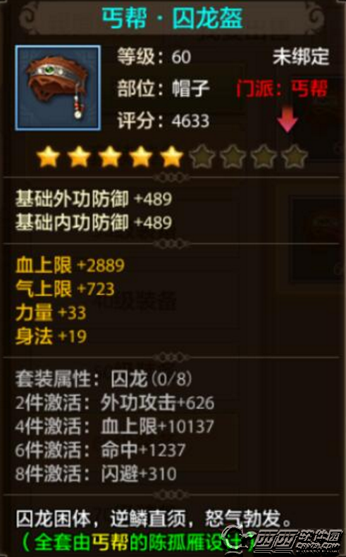门派套装:和其他职业都一样,尽量选择4星和5星的套装最佳。