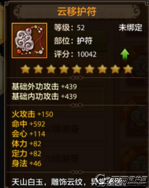 最后是灵气,身法,定力,气上限这些。一件逍遥极品的攻击装备最好就是,火攻击,命中,会心,体力,所有属性,灵气,为最佳装备,下图定力换成灵气或者内功就是完美装备。但是一般有火攻击和体力属性,再加上几条别的属性,