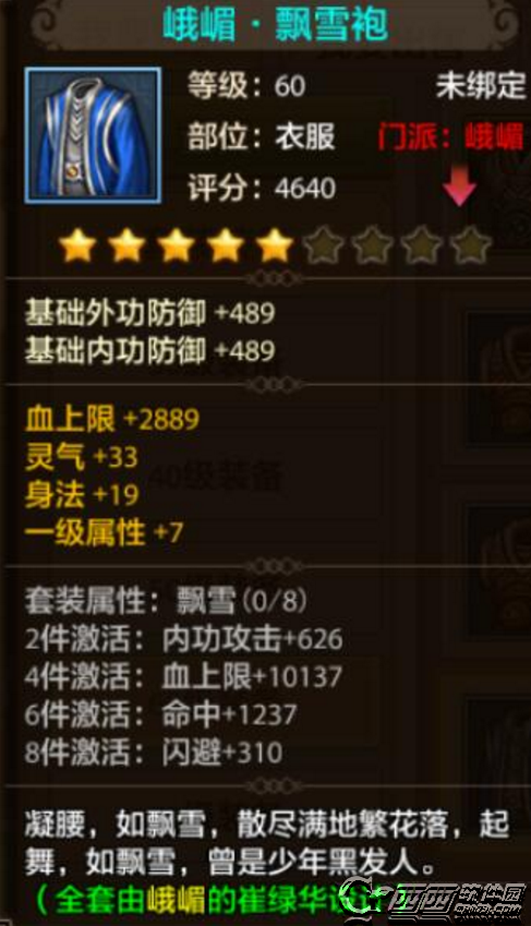 可以选择星数高一点的门派套装,尽量选择4星和5星的,战斗力会增加的多一点。