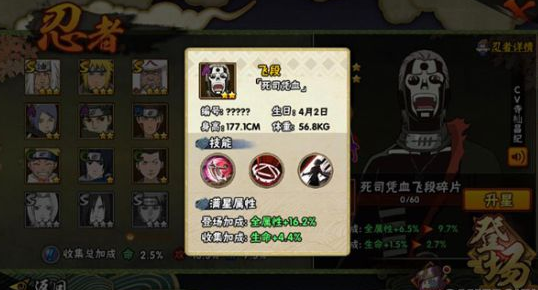 3. 秘卷技能:飞段【死司凭血】的格斗机制较为符合技能消耗型忍者的定位,所以限制走位型或起手型秘卷技能都可以和他搭配打出较好的效果。