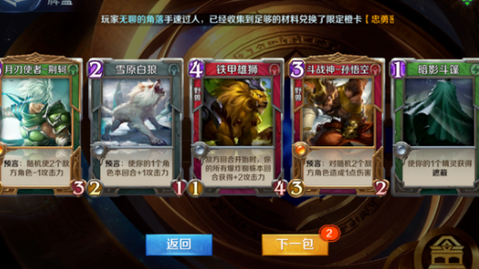 孙悟空仅仅是对两个随机角色造成伤害,而且3费3攻2血的身材貌似和其他的全体角色造成伤害的卡有所不如,但是初始就有3攻,而且只要英雄升到2阶就能对敌方角色造成2点伤害。