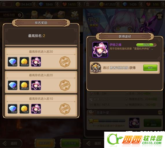 开启3星的伊娃需求玩家收集40张碎片,玩家可以通过进去勇者试炼的试炼组前20名获得40张英雄之魂之后开启,还可以通过勇士试炼商店兑换获得。