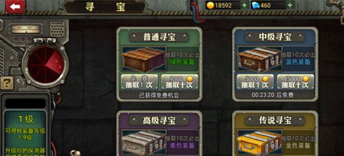 游戏中的装备共有7种分别为:武器、头盔、衣服、斗篷、手腕、腰带、靴子。装备来源途径主要在闯关、夺宝和充钱购买获得,在战斗中获得的装备等级都不高,简单的说就是比较差的啦。想要比较好的装备可以通过夺宝,获得橙色或者紫色的装备。每天都可以免费抽1次,满十次必出高级装备。