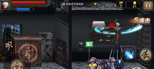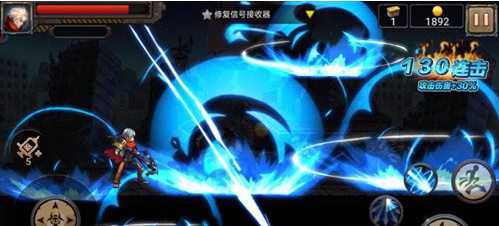 在操作过程中需要巧妙的利用跳跃来躲避敌人的攻击,两连跳时不要连续点得太快,不然第二次会跳不到。在攻击敌人的时候会集满能量,等蓝色能量条满了可以出发大招,对全屏敌人进行攻击,威力巨大。
