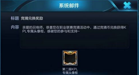 使用竞猜币兑换到第二届kpl专属头像框之后,可以在系统邮件中领取到头像框。