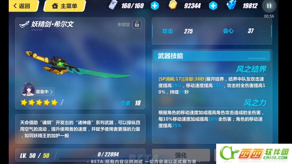 风之结界SP消耗17 CD38秒:展开结界,结界中 队友攻击速度提高25%,移动速度提高25%,攻击时全伤害提高10%,持续19秒