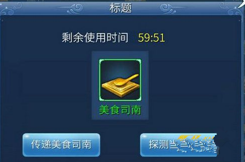 美食司南可在帮会成员间传递。(每个帮会仅有一个)传递时,可获得食物奖励。