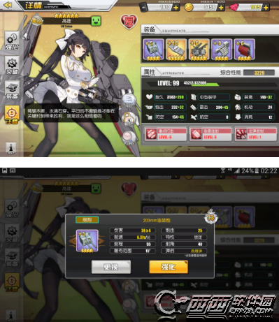 单发攻击为28点的三联装203主炮,燃烧伤害为85点