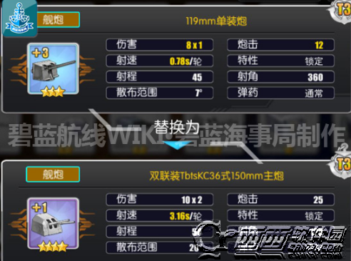 很惊人的发现,双联装150MM主炮的最终炮击值比119MM单装炮要高13点,但炮击加成倍率居然还比后者低,由此我暂定装填时间是影响炮击加成倍率的因素,所以为驱逐选择主炮的时候应尽量选择速射炮