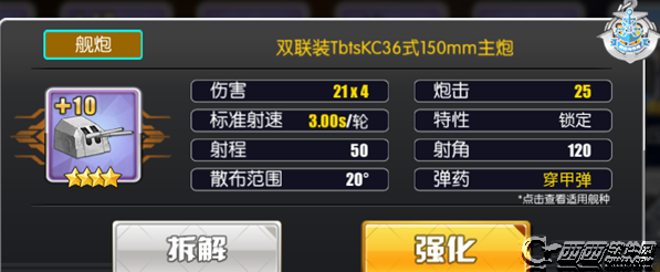 好啦,以上就是碧蓝航线双联装TbtsKC36式150mm主炮怎么样 值得培养吗,希望对各位有用!如果你还有其他相关难题想要了解可以在下方留言哦,西西将会第一时间为您解答,更多游戏资讯请继续关注西西软件园!