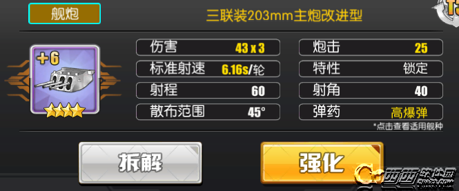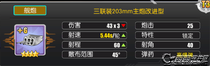 而203mm连装炮因其不慢的射速,高爆弹对轻甲伤害的加成以及炮弹数量较多而在对轻甲伤害中拔得头筹,鉴于捞船时大家面对的大部分敌人是轻甲,该炮可以发挥出较好的效果。