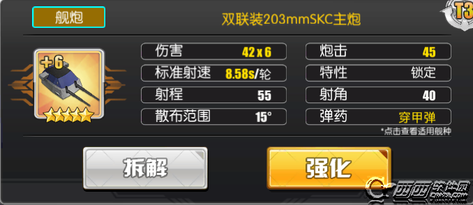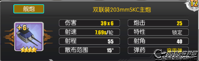 T2和T3的203SKC虽然也是穿甲弹,但良好的散布、双炮座高达12发的炮弹,让它们在面对轻甲目标时也能达到较高的伤害,尤其是唯一5星重巡炮双联装203SKC T3,使用穿甲弹在面对轻甲目标时也能在秒伤上接近排名第一的203mm连装炮,哪怕是T2级伤害也接近203mm连装炮的80%,加上穿甲弹自带的穿透属性以及面对中甲时的优势,不愧是传说中的重巡唯一指定用炮。