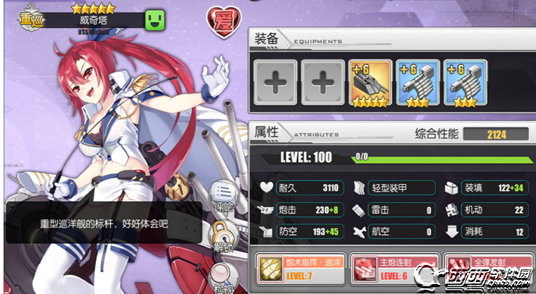 使用100级满破威奇塔进行测试,技能分别为7/6级,全弹发射为每6轮触发一次雁型5发炮弹,伤害对不同敌人约200-300,由于弹型密集,基本能中个两三发,聊胜于无。 以下是待测试装备仓库属性及威奇塔装备时属性,均为+6装备,以及威奇塔属性截图,由于威奇塔的装填大于100,因此装备后的主炮装填时间和仓库中的原始属性相比略有下降:
