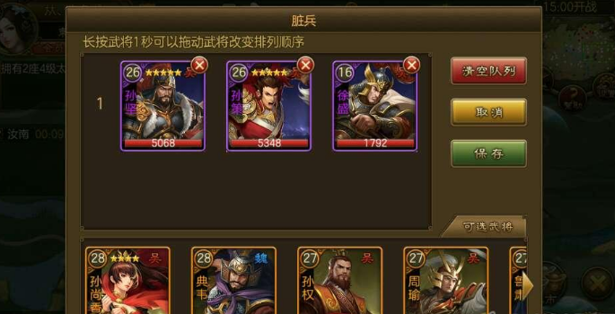 第二步:点列队①选择你经常用的武将常按武将可以拖甩,也可以给自己选择的武将起一个队伍名称。