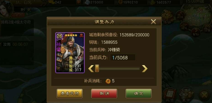 第三步:点武将部队选择武将出兵量,可以输入自己想要的数字。比如十八铜人阵,一个将一个兵。