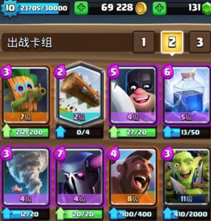 卡组思路:这个卡组是一个半坦克半消耗的组合,在我们的卡组中有着皮卡超人这张高血量卡牌,在防守后可以搭配飞斧屠夫和吹箭等卡牌打出一定的坦克进攻,而我们的野猪骑士则是可以在对战中起到很好的灵活消耗的作用,在我们的卡牌防守后,搭配野猪来进行消耗,如果遇到一些强力卡牌,那么直接雷电斩杀来帮助野猪突破即可,特别是在我们皮卡超人防守后,搭配较多的辅助卡和野猪进行推进的话效果更佳。