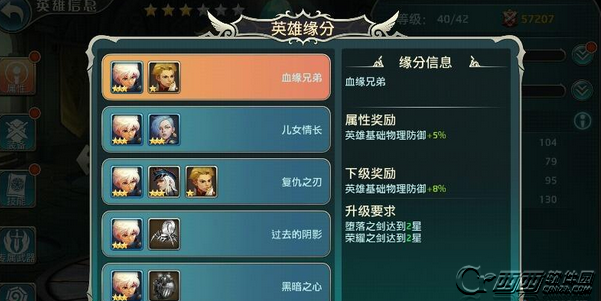 每一个英雄都有着属于他的缘分,分别和不同的英雄或者装备可以组成不同的缘分,缘分所增加的属性还可以根据英雄的等级,装备的进阶等级来提升缘分所增加的属性喔