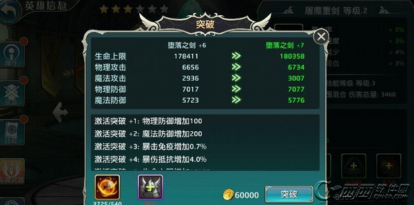 不同阶段的突破需要不同数量的突破石,而且突破在4级就需要置顶的蓝色装备去图片,在突破6级以上还需要指定的紫色装备,所以除了可以在商店,冒险关卡,活动之类的地方获取到突破石,还需要去获取到足够的装备